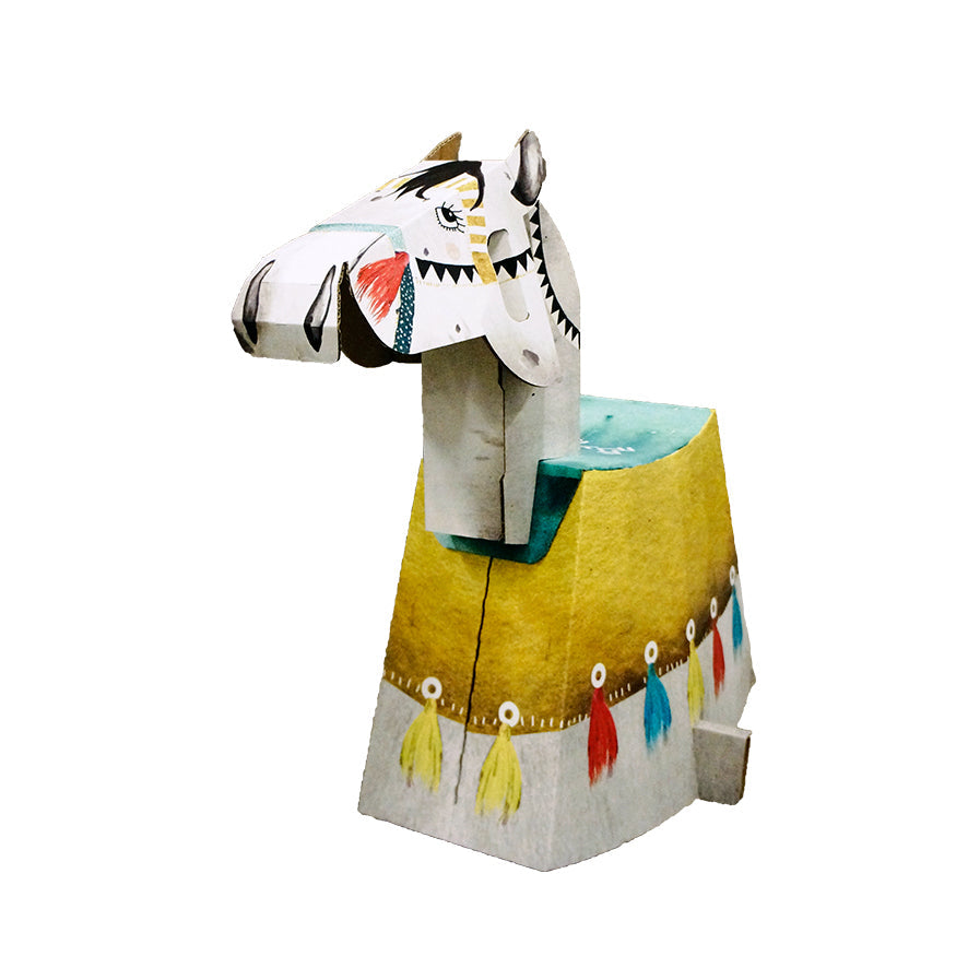 Le meuble en carton à monter, qui bascule. La tête peut également être séparé puis être accroché au mur. Vous avez du coup un tabouret.