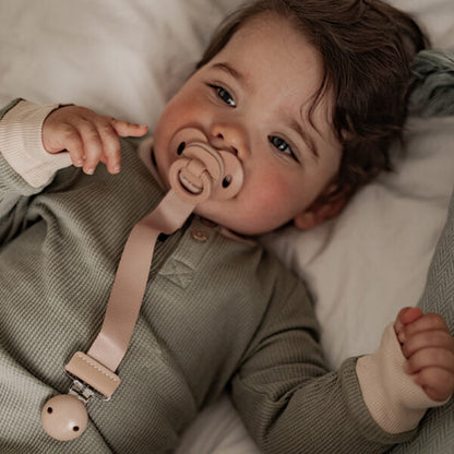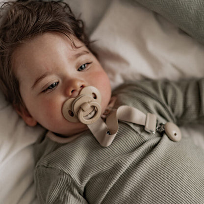 Après 2 ans de travail, Elodie présente sa nouvelle génération de sucettes, mélange de bambou et polypropylène. Un look naturel dans de jolies couleurs à la finition mat.