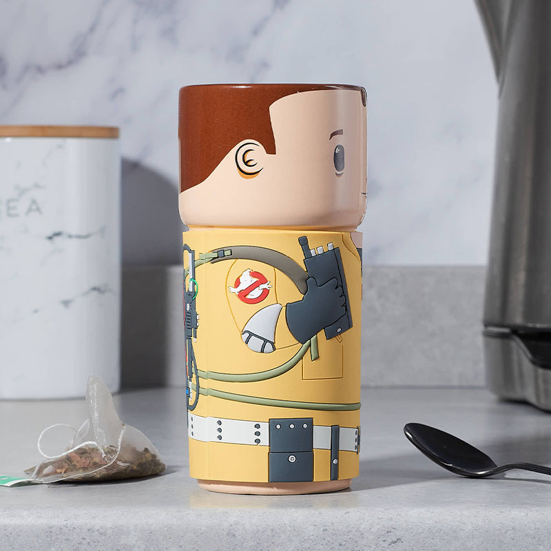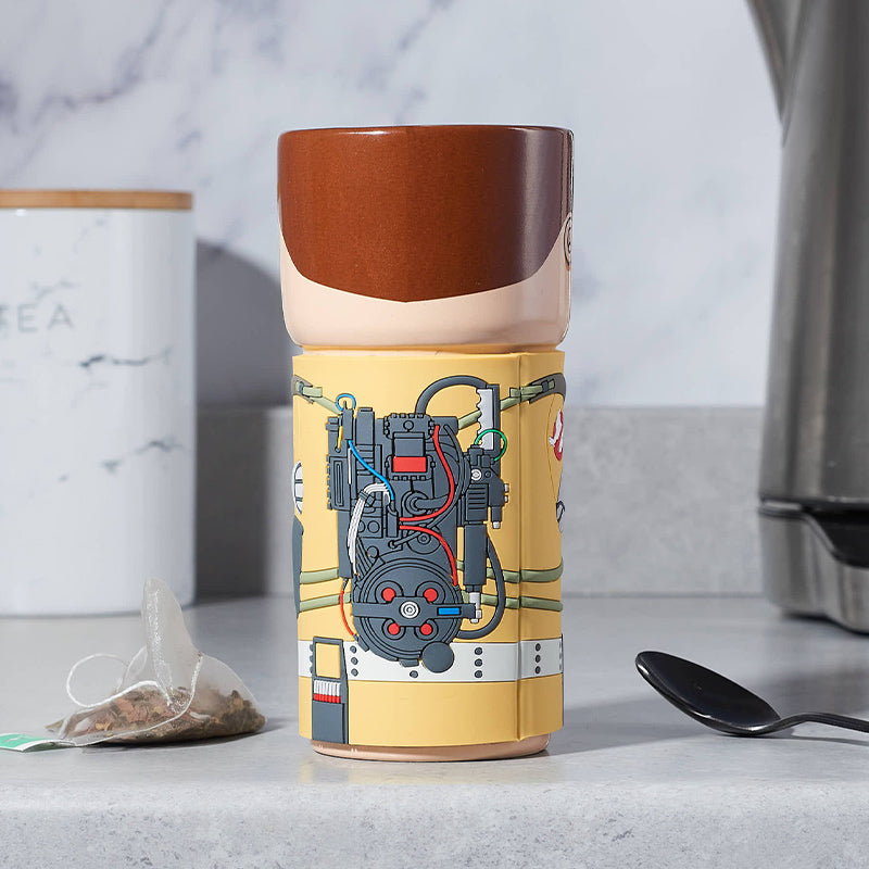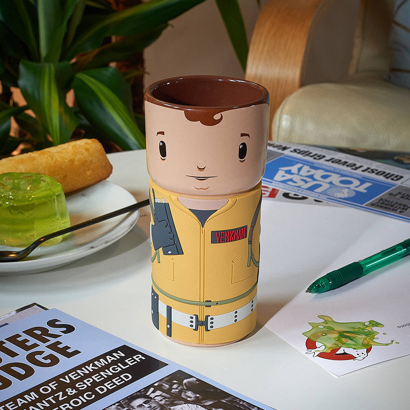• Tasse cosplay réutilisable de Peter Venkman des films Ghostbusters.
