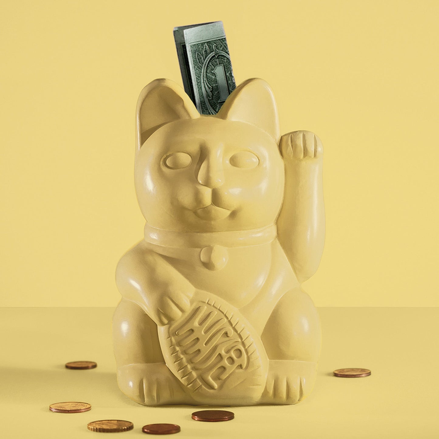 De la tirelire cochon à la tirelire chat. Notre nouveau membre de la famille Maneki Neko garde votre argent en sécurité et apporte la dose supplémentaire habituelle de chance en plus. Tous nos Lucky Cats populaires détiennent une pièce qui signifie "SEN MAN RYOU" - ce qui signifie "10 millions de pièces d'or pour vous". Les meilleures conditions pour une banque d'argent.