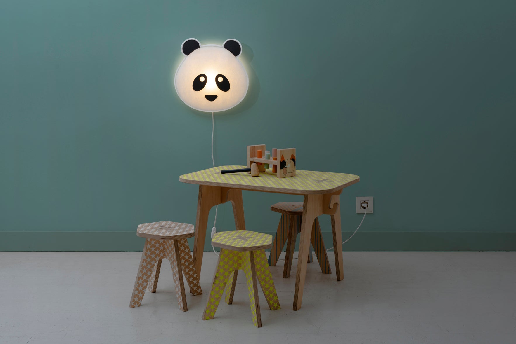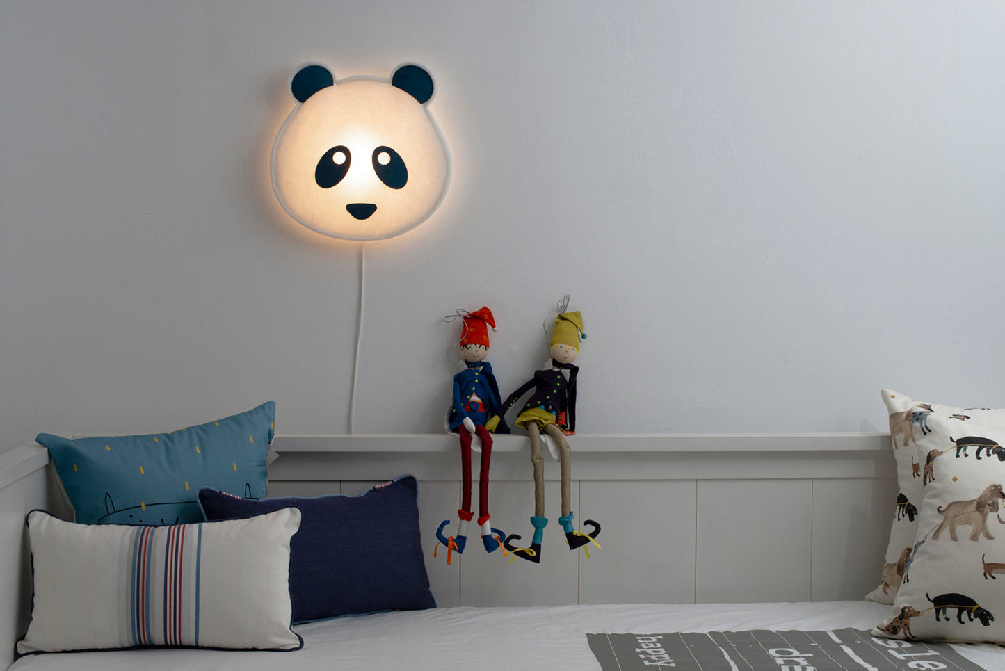 Um papel de parede de 'máscara de animal' para colocar no quarto de uma criança. LED Max 8W, bulbo GX53 incluído, este testado. O equipamento é feito de garrafas plásticas recicladas.