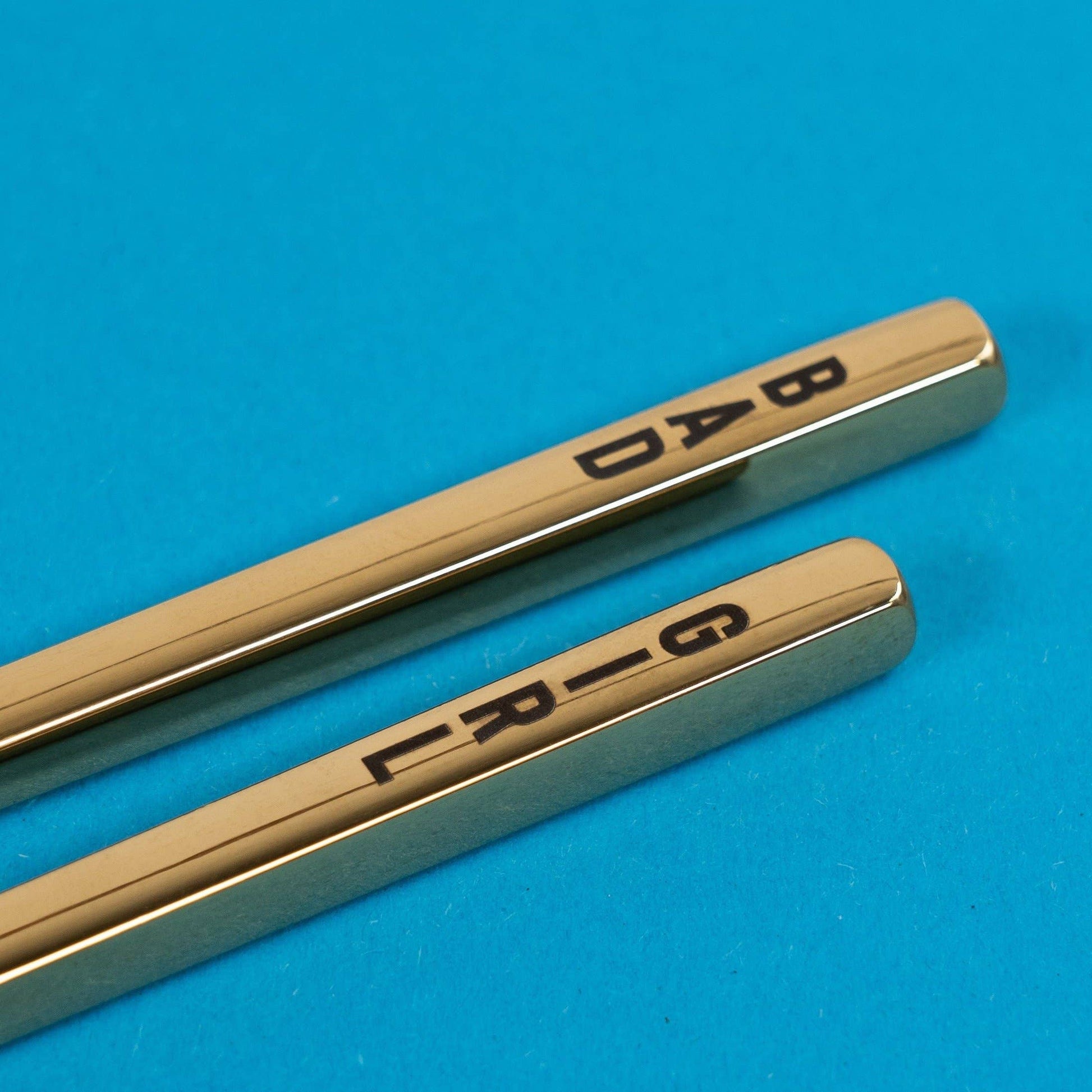 Baguettes asiatiques en acier inoxydable. Gravure au laser. Personnalisation "BAD GIRL".
