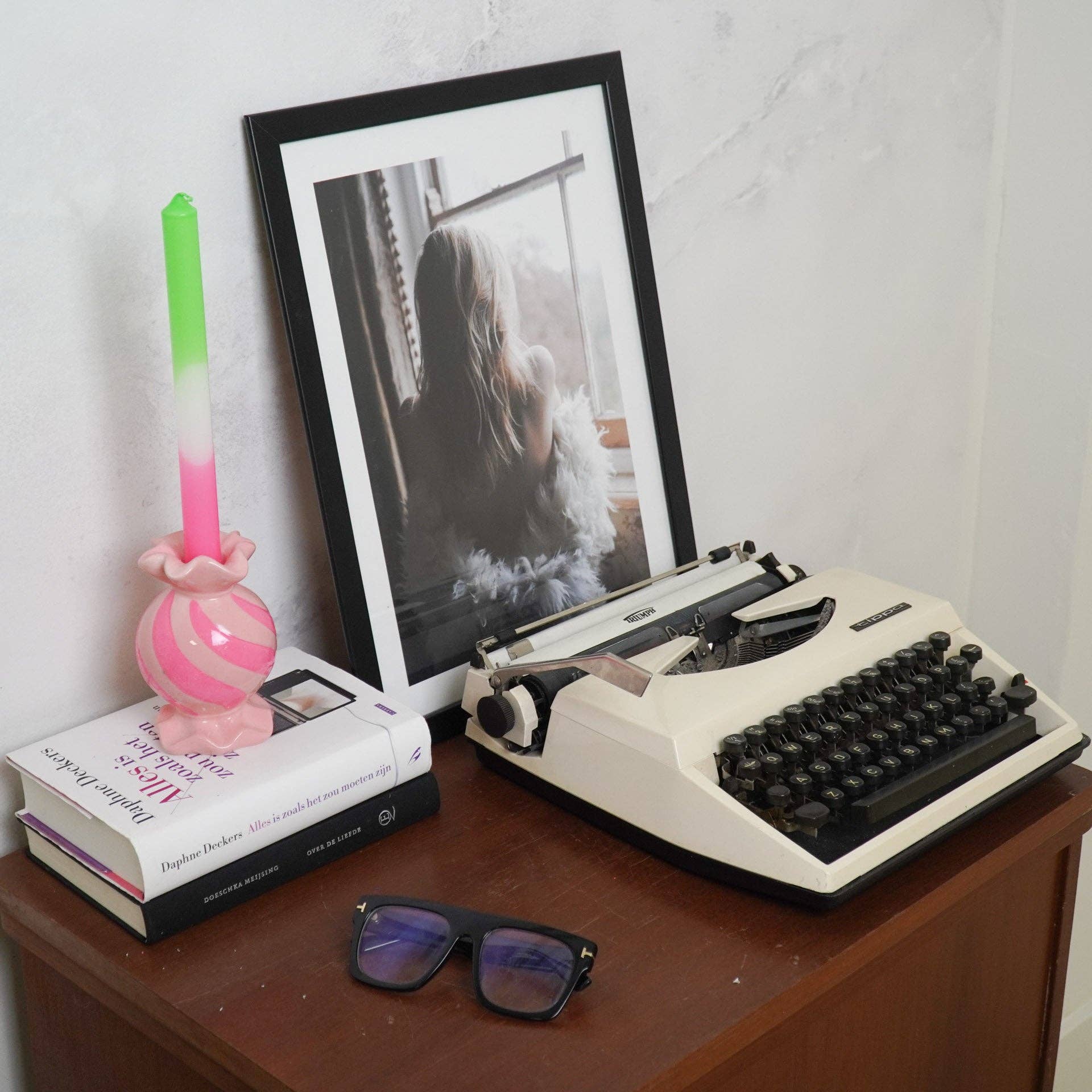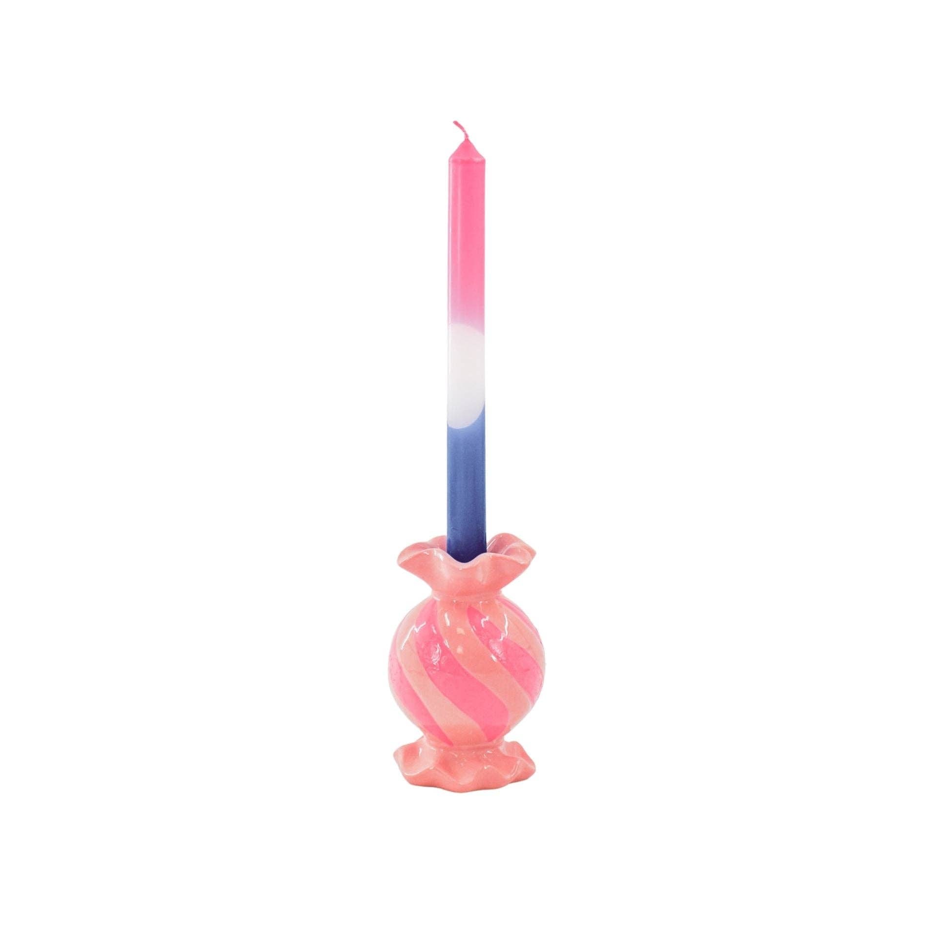 Bougeoir - Bonbon Toffee Rond - Céramique - Rose/ Néon - 8,5x8,5x13 cm