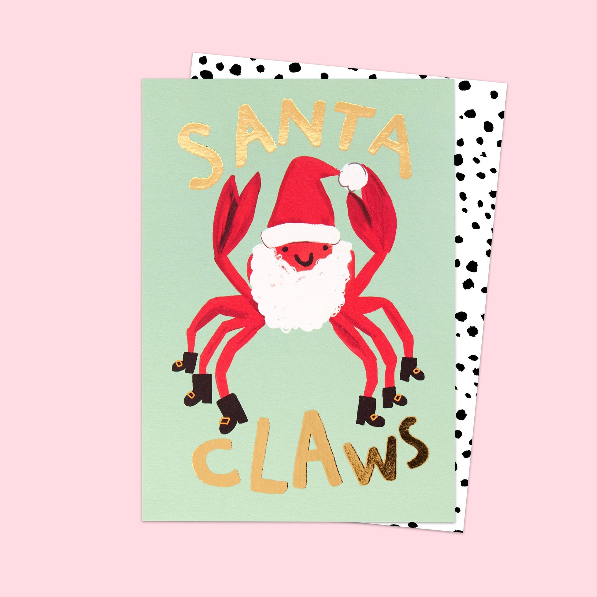 Le Père Noël est arrivé et il est là pour répandre la joie de Noël ! Avec un crabe rouge amical portant un joyeux chapeau et une barbe de Père Noël, cette carte adorable vous fera sourire d'une oreille à l'autre.