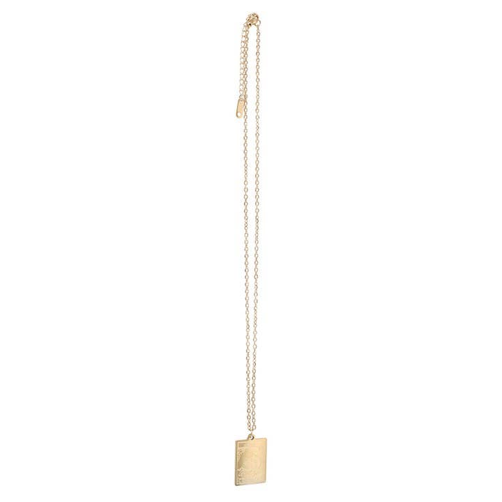 Ce collier pendentif doré présente le design de la carte de tarot La Lune, symbolisant l'intuition et la sagesse. Présenté sur une carte de vœux magnifiquement illustrée, il constitue un cadeau attentionné pour les amateurs de tarot et pour célébrer les moments précieux de la vie. Acier inoxydable sans nickel. Comprend une enveloppe assortie. Carte laissée vierge à l'intérieur. Conçu par Something Different Wholesale et faisant partie de la collection Vintage Tarot de cadeaux mystiques et de décoration intérieure.