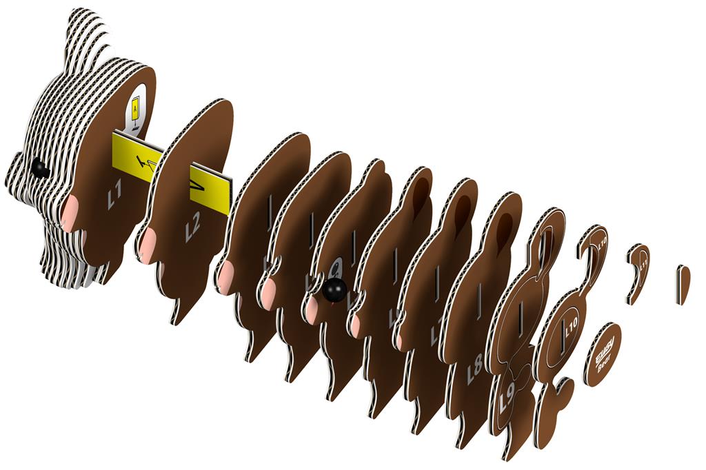 Nos produits sont conformes à 100% aux normes de sécurité internationales (EN71-1,2,3 et CPSIA). Un pack EUGY contient 7 cartes plates avec des pièces numérotées individuellement, toutes prêtes à être assemblées.