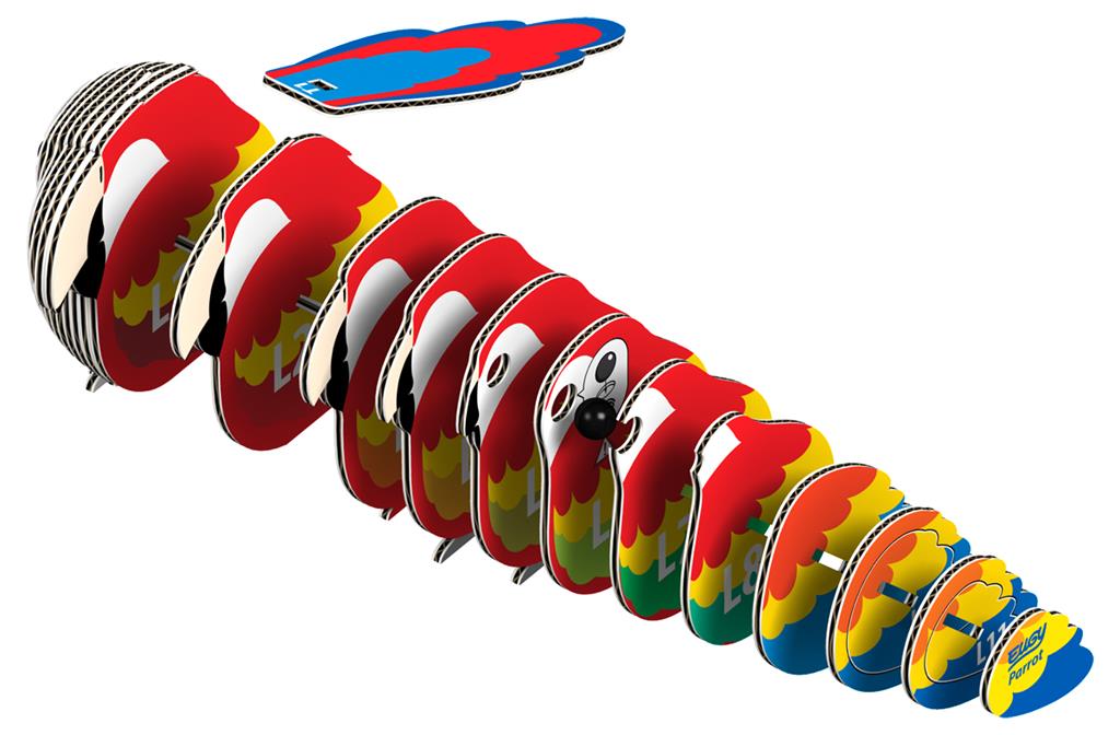 Eugy 3D Modèle: OISEAU / PERROQUET 13x4.3x5.5cm, en carton, en boîte, 6+