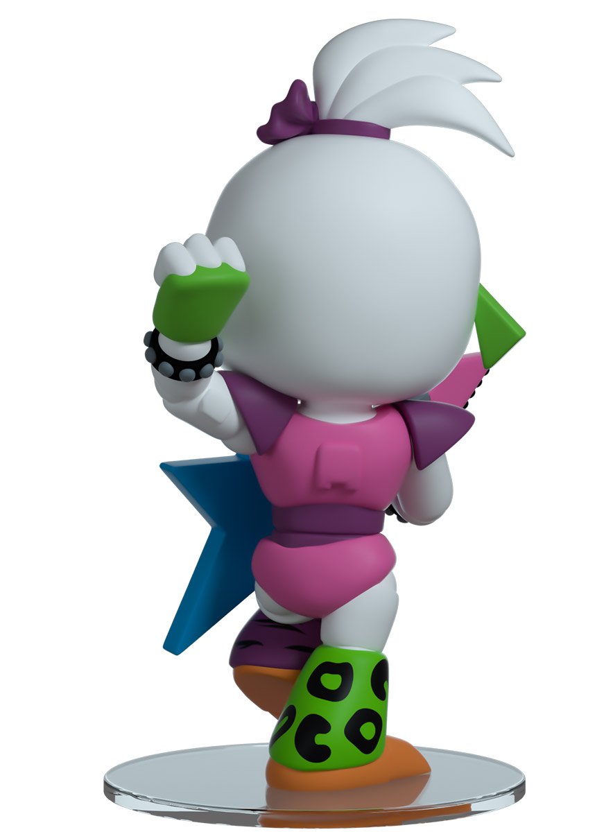Glamrock Chica mesure 4,6 pouces avec un énorme sourire sur son visage. Elle tient une guitare bleue, rose et blanche avec sa main droite alors que sa main gauche est en l'air. Ses accessoires comprennent des boucles d'oreilles triangle vertes, un nœud pour cheveux violet et un mélange de gants et de jambières verts et violets. L'extérieur de son emballage à double paroi montre l'entrée de la pizzeria intérieure. L'intérieur montre un moniteur de sécurité installé, montrant Freddy, Chica, Monty et Roxy à travers les écrans tandis que Vanny se tient derrière la machine, regardant. La pochette de protection montre Freddy, Chica, Monty et Roxy jouant de leurs instruments respectifs devant le logo Security Breach. Cet objet de collection est livré dans un manchon extérieur mat, gaufré et protecteur et un protecteur en plastique de taille personnalisée pour une protection maximale pendant l'expédition.