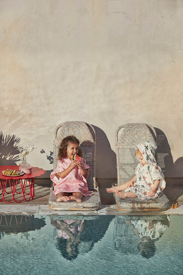 Este lindo poncho tem um forro de algodão super absorvente de alta qualidade que secará sua criança em pouco tempo.