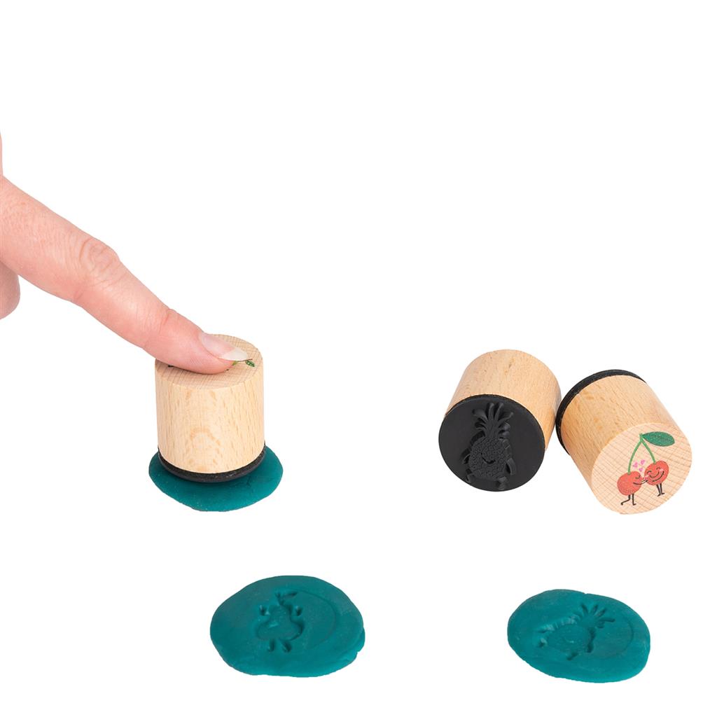 Faites découvrir à votre enfant la richesse de la nature à travers le jeu créatif avec le set de tampons en bois “Fruits” de Knetä 🍒🍊🍓